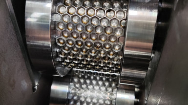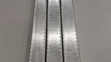 Zespół Laboratorium Procesów Wyciskania AGH we współpracy z firmą Drabest dokonał walidacji zestawu i przeprowadził próby walcowania fakturującego na zimno profili wyciskanych ze stopu aluminium w gatunku EN AW-6060 przeznaczonych na elementy konstrukcyjne drabin aluminiowych - dla różnej wielkości szczeliny między walcami (gniotu): 19,6mm dla próbki 1, 19,2mm dla próbki 2 i 18,8mm dla próbki 3 z wykorzystaniem wypełniacza wewnętrznego dopasowanego z luzem 0,2mm. Pozytywnie oceniono jakość powierzchni/dokładność odwzorowania faktury na powierzchni profili aluminiowych, jak również stabilność geometryczną profili po procesie walcowania fakturującego. Stwierdzono, że uzyskane wyniki są konstruktywną podstawą do określenia wytycznych do projektowania urządzenia przemysłowego do walcowania fakturującego wyciskane profile aluminiowe na elementy konstrukcyjne drabin aluminiowych, z przełożeniem na zwiększenie ich przyczepności, własności wytrzymałościowych oraz poprawę estetycznych walorów wizualnych.