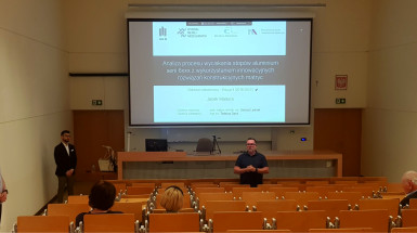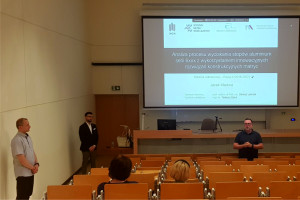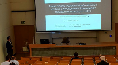 W dniu 10 czerwca 2022 r. podczas seminarium na Wydziale Metali Nieżelaznych AGH w Krakowie doktorant Jacek Madura wygłosił referat dotyczący wyników badań nad procesem wyciskania profili ze stopu EN AW-6005A dla budownictwa z wykorzystaniem oryginalnej konstrukcji matrycy komorowej ze specjalnymi wypustami profilującymi w kanałach wlotowych. Szczególnym osiągnięciem doktoratu wdrożeniowego jest maksymalizacja prędkości wypływu metalu z matrycy z poziomu ok. 25 m/min do poziomu ponad 40 m/min, przy równoczesnym zachowaniu parametrów jakościowych profili wyciskanych takich jak: tolerancje wymiarowe, własności mechaniczne, czy chropowatość powierzchni. W wyniku doktoratu powstało znakomite narzędzie do prognozowania warunków utraty wytrzymałości w narzędziach/matrycy oraz warunków utraty stateczności materiału w wyciskanym stopie z wykorzystaniem hybrydowego (połączonego) kryterium pękania Cockrofta-Lathama i Freundental'a. Przełoży się to na znaczne obniżenie kosztów wdrażania matryc będących przedmiotem doktoratu, ale przede wszystkim matryc czekających w kolejce na optymalizację ... :)
