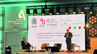 W dniu 7 czerwca 2024 r. zaprezentowaliśmy referat na konferencji Polskiego Stowarzyszenia Aluminium pt. "Przykłady projektów ze zdefiniowaną innowacją produktową, procesową i cyfrową w zakresie wyciskania stopów aluminium". Wystąpienie dotyczyło prezentacji przykładów innowacji w zakresie wyciskania stopów aluminium w przykładowych projektach prowadzonych przez Wydział Metali Nieżelaznych AGH we współpracy z przemysłem, w szczególności z takimi firmami jak Vitrintec, Alusupplies oraz Albatros Aluminium i ADT Solutions. W przypadku projektu Albatros Aluminium zdefiniowano i zaprezentowano innowacje procesową- oryginalne na skalę światową urządzenie do dynamicznego prostowania profili aluminiowych, które wywołuje korzystne zmiany w strukturze materiału z przełożeniem na wzrost wytrzymałości na rozciąganie. W przypadku projektu ADT Solutions zdefiniowano innowację cyfrową jaką są autorskie rozwiązania cyfrowe gospodarki zarządzania matrycami- znakowanie matryc, skanowanie kodów matryc, czy automatyzacja procesu azotowania matryc do wyciskania profili aluminiowych. Zdefiniowano także innowację produktową- nowe rozwiązania materiałowo-konstrukcyjne matryc do wyciskania z uwzględnieniem zastosowania stali specjalnych i techniki druku 3D specjalnych insertów matrycowych oraz innowację procesową- nowe rozwiązania konstrukcyjne urządzeń na wybiegu prasy korygujących geometrię wyciskanych profili z uwzględnieniem wizyjnych systemów pomiarowych on-line na wybiegu prasy.