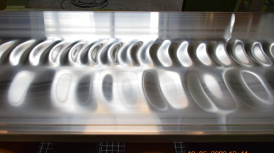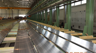 WMN AGH Kraków wdrożyło do praktyki przemysłowej firmy Albatros Aluminium w Wałczu bardzo trudny do wyciskania cienkościenny i szeroki profil do zabudów wielkogabarytowych samochodów ciężarowych – ze stopu EN AW-6005A. Wdrożenie zostało poprzedzone analizą statyczno-wytrzymałościową odchudzonego i wzmocnionego obwodowo profilu z wykorzystaniem programu ANSYS, szeregiem obliczeń numerycznych MES procesu wyciskania (przepływ aluminium przez prześwit matrycy, ugięcie sprężyste matrycy w kierunku wyciskania, opory płynięcia metalu i siła wyciskania), jak również serią korekcji matrycy komorowej. Korekcja matrycy pozwoliła na poprawę stabilności geometrycznej wyrobu, który początkowo charakteryzował się licznymi głębokimi pofałdowaniami. Finalnie uzyskano uzasadnione ekonomicznie parametry procesowe, w szczególności wysoką prędkość wypływu metalu z otworu matrycy oraz wysokie parametry jakościowe wyrobu. Badania dokładności wymiarowej wyciskanych profili ze stopu EN AW-6005A z wykorzystaniem systemu fotogrametrycznego ATOS GOM wskazują na odchyłki wymiarowe wyrobu mieszczące się z zapasem w granicach dopuszczalnych tolerancji wymiarowych – zgodnie z normą PN-EN 775-9. Jednocześnie uzyskano wysoką jakość powierzchni wyrobu w postaci niskiej chropowatości powierzchni (parametry Ra, Rz), jak również odpowiednie własności mechaniczne wyciskanych profili. Wypracowano know-how wydajnego procesu wyciskania wysoko-jakościowych lekkich i wytrzymałych profili dla segmentu transportowego.