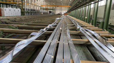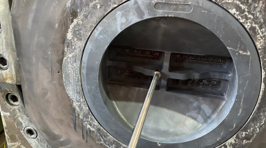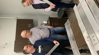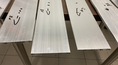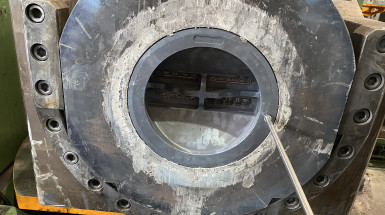 W dniu 2 marca 2022 r. Zespół LPW AGH przeprowadził w jednej z krajowych prasowni próby wdrożeniowe 2 4-otworowych matryc do wyciskania profili dla budownictwa z wykorzystaniem pojemnika 10-calowego. Matryce zostały zaprojektowane tak aby minimalizować pasy termiczne na powierzchni profili wyciskanych ze stopu EN AW-6060. Oprócz matrycy produkcyjnej analizowano także matrycę testową, mającą na celu określenie wpływu liczby stopni przedkomory oraz geometrii lokalnych wypustów spęczających na jakość powierzchni wyciskanych profili. Niezbędna jest korekta matryc zwiększająca równomierność wypływu metalu z poszczególnych otworów matrycy, po czym planowana jest kolejna seria prób wdrożeniowych. Planowane są także badania chropowatości powierzchni, struktury materiału oraz tekstury w obszarach T, gdzie występuje naturalna tendencja do lokalnego przyspieszania metalu.